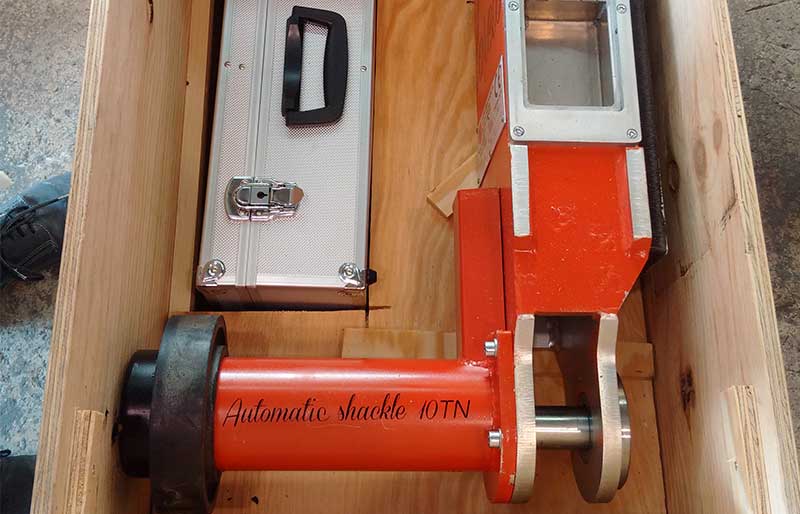 El modelo de grillete automático NOA JR ha nacido como una demanda de innovación en los muelles de carga, para las operaciones portuarias pero que por su tonelaje es altamente apropiado para la industria en general y las manipulaciones de carga que en ellas se llevan a cabo, en general todo aquello que disponga de una orejeta o similar para su elevación, la carga se fija gracias al bulón accionado neumáticamente por el propio equipo NOA JR. Este modelo está pensado y diseñado para soportar las duras condiciones industriales tales como golpes, climatología, fuertes tensiones y demás acciones de uso, inevitables en el trabajo, así como situaciones de baja visibilidad.